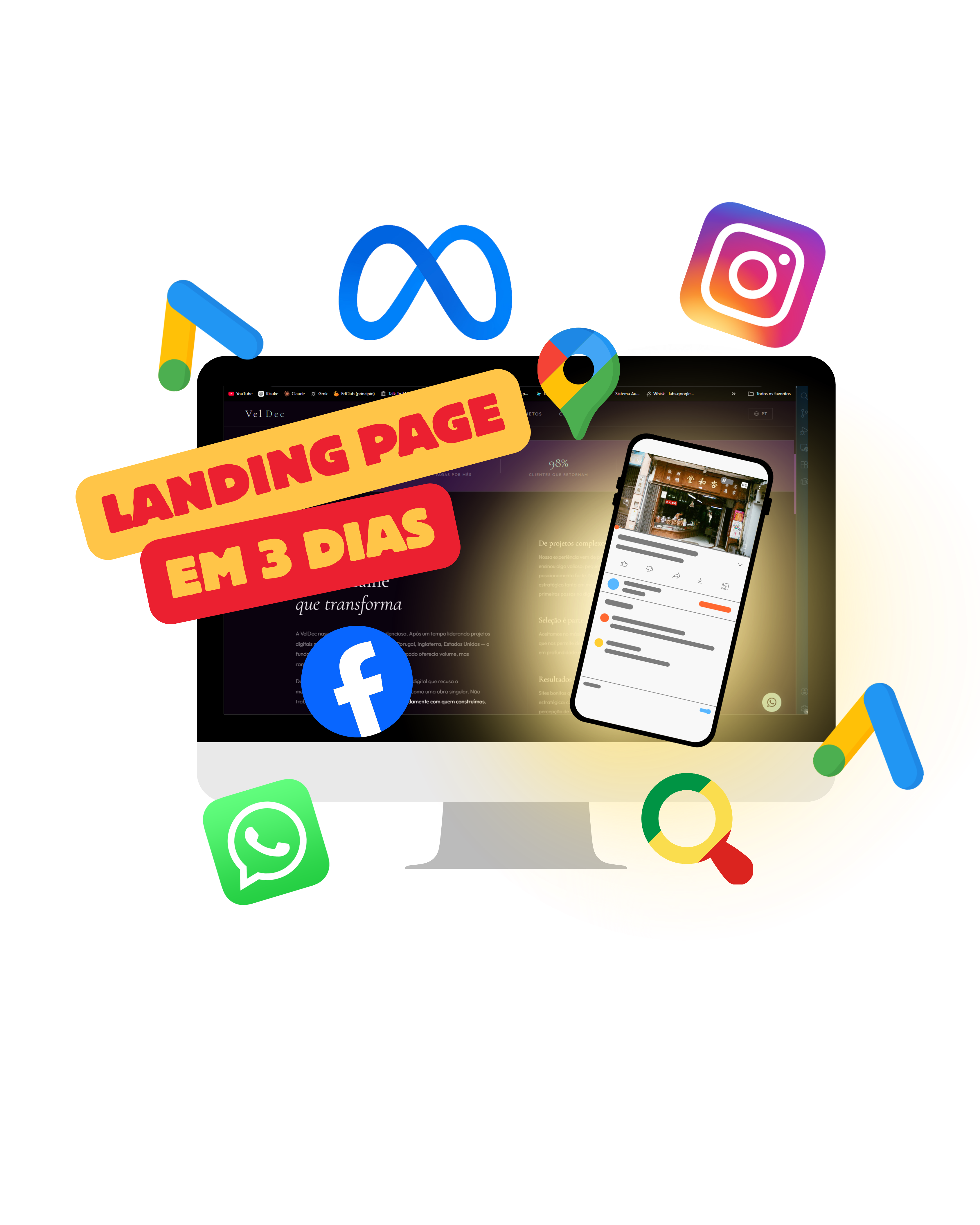 Com uma landing page otimizada para tráfego pago, seu negócio passa a aparecer no Google para pessoas que já estão procurando pelo que você vende, gerando visitas, contatos e oportunidades de venda todos os dias.